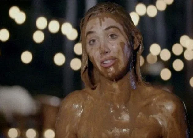 The pair, who don’t appear to be wearing any clothing, can then be seen drinking champagne and sharing an intimate moment as they immerse themselves in the warm, sticky chocolate.