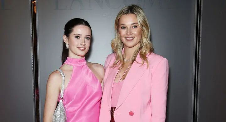 The girls arrived in twinning outfits, with Willow wearing a pink satin dress with a mirrorball bag and strappy silver heels, and Jasmine in a flamingo pink blazer and top, which she daringly coordinated with a shiraz coloured wide-legged pants, and a Chanel bag.