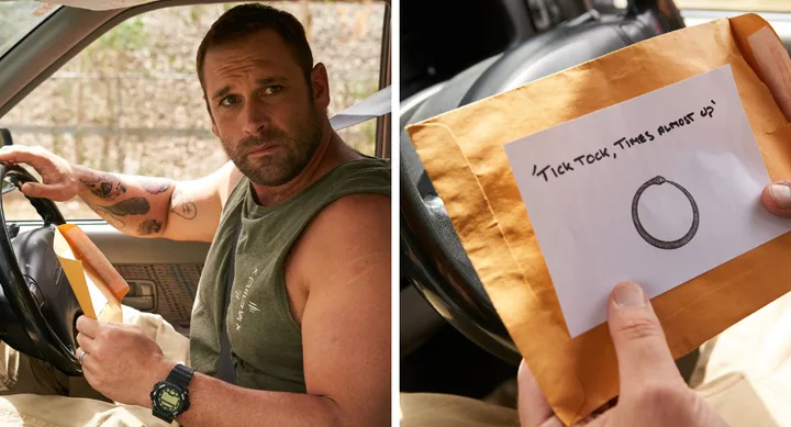 In tonight’s must-see installment, a besieged Robbo (Jake Ryan) spots an envelope under the visor in his car.