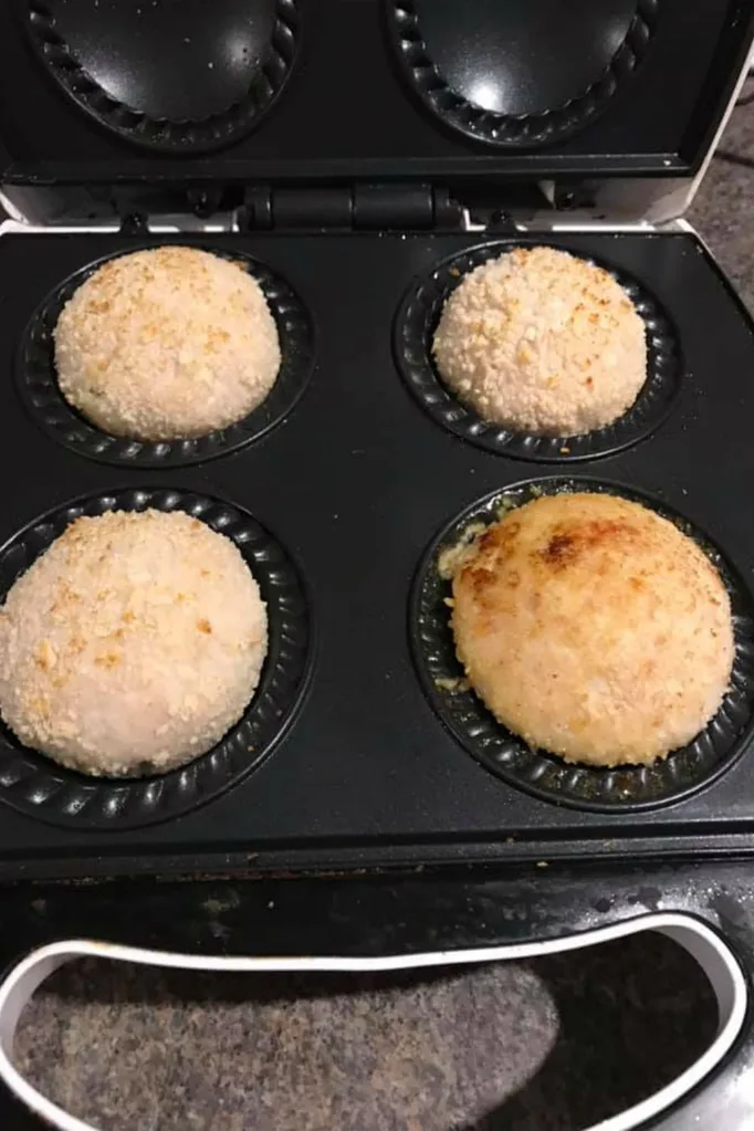 … until golden brown! Yum! (Image: Kmart Pie Maker Recipes, Tips and Ideas Australia/Facebook)Yum! Since posting her recipe, many of Ellisa’s Pie Maker pals have taken to the hugely-popular Facebook page to reveal how they’ve had great success with the recipe.Says fellow member Jodie: ‘Omg big thank u to the lady that posted this recipe a few days ago ….it was amazing💖🙌🥧 Chicken mince with garlic butter added to the middle with an egg added then rolled in Panko crumbs with Parmesan, herbs & salt & pepper 😋🥰 So quick and easy.’Pie Maker Jodie is one of many who has tried Ellisa’s recipe … and loved it! (Image: Kmart Pie Maker Recipes, Tips and Ideas Australia/Facebook)And just look how good they look! (Image: Kmart Pie Maker Recipes, Tips and Ideas Australia/Facebook)We couldn’t agree more! For more amazing ideas, make sure you’re following the Kmart Pie Maker Recipes, Tips and Ideas Australia Facebook group – click here for more!