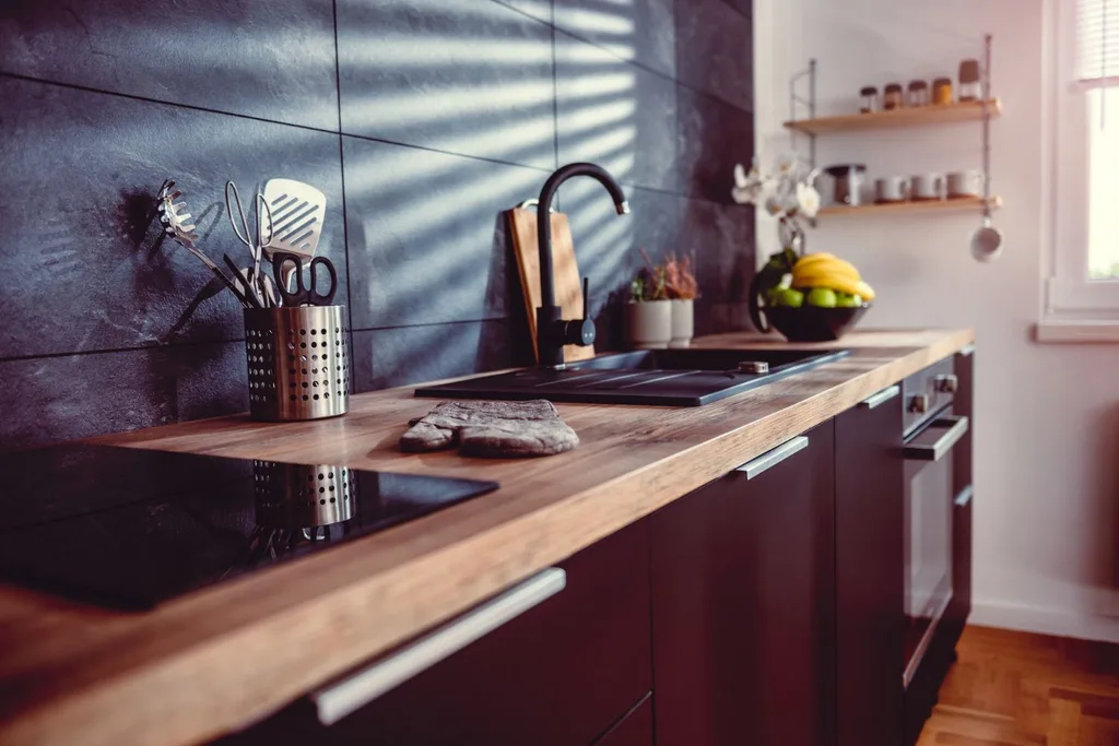 Brighten up a dark kitchen with a pop of colour. Black is a versatile base layer to layer on. For added continuity use the colour throughout the rest of your home.