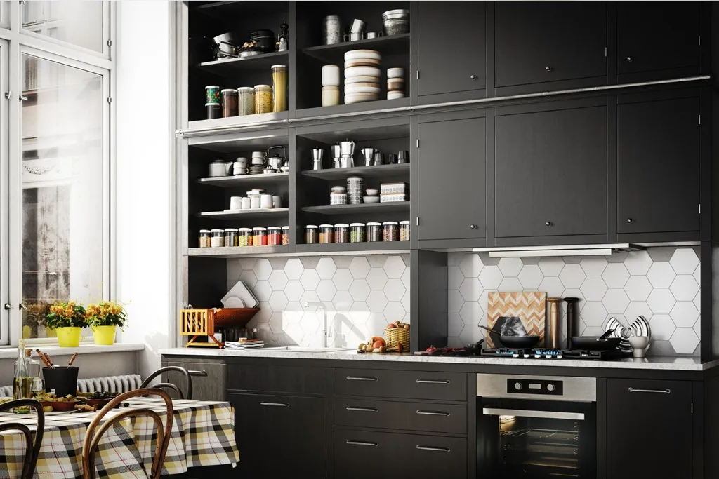 Matte black surfaces are your key to a sleek kitchen. They also let your appliances shine without making too much of a bold statement.