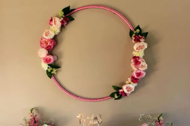 We’ve already seen Kmart Mums Australia take pool noodles to the next level to create amazing Christmas decorations, and this new hack is just as amazing. To create them, the DIY mums just wind ribbon or ivy around the hula hoop using a hot glue gun to secure it – and then attack flowers and letters using the hot glue gun again for the finished product. Follower Izabella took inspiration from the many hula hoop hacks she’d seen to create this centrepiece, pictured above, for her pink-themed party, revealing that she used pink ribbon and two bunches of fake blooms from Kmart.‘My first Kmart hack worked great as a backdrop – hula hoop & all flowers from Kmart,’ she wrote. ‘Thanks for the inspiration ladies x’Others loved her post, writing ‘Absolutely gorgeous’ and ‘This looks stunning’, followed by ‘So gorgeous!!’(Image: Kmart Mums Australia/Facebook)Follower Em Louise made this for her baby shower, pictured above, adding letters for a special effect – and we couldn’t love it more!She writes: ‘I wanted so badly to hire one of these for my baby shower but it was going to be $75 plus the bond and I just thought that was ridiculous for a damn hoop for one day 😂!‘So I went to Kmart brought a hula hoop lucky for me after taking the plastic colour off the hoop it was brown underneath (like I wanted) I covered it in ivy and flowers all from Kmart!
