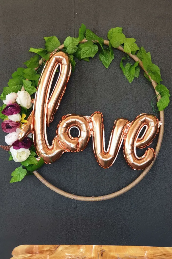 Gorgeous! And Kmart Mum Kate made this epic version, above, using mini ‘love’ balloons from Kmart!She writes: ‘So my hubby and I own a very busy hotel, this weekend we have an engagement party in our beer garden, so I have had to get my craft on. Very happy with the end result, 4 of these later.’(Image: Kmart Mums Australia/Facebook)Another follower Duygu whipped up this super gorgeous creation, above, featuring pink ribbon and more faux flowers.She writes: ‘First attempt! Turned out so much better than I thought ❤️ flowers and hoop from Kmart.’(Image: Kmart Mums Australia/Facebook)And Kmart Mum Milly whipped up this amazing version, above, using flowers and blackboard paint – and it really sets off the table!She writes: ‘Had the pleasure in hosting my girlfriends babyshower today… lots of Kmart so thanks Kmart!!’Love it! For more inspiring ideas and awesome DIY projects, make sure you’re following Kmart Mums Australia – click here for more!