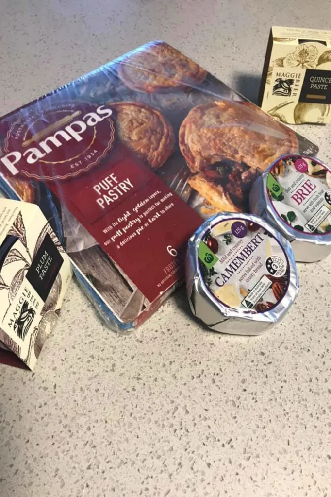 Revealing her recipe, Holly says she uses Pampas Puff Pastry, 125g brie or camembert rounds and quince or plum paste.