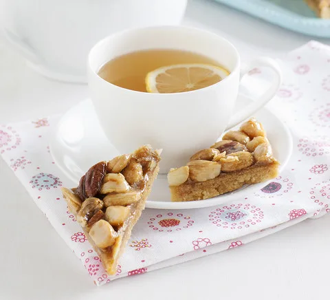 Crunchy, nutty and delicious! With a buttery biscuit base, these slices are seriously sweet thanks to sticky, gooey honey. Perfect for afternoon teas.