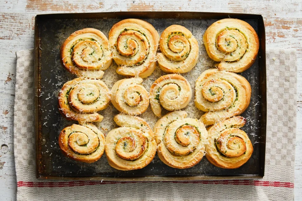 Remove scrolls from oven. Sprinkle with parmesan. Serve warm.