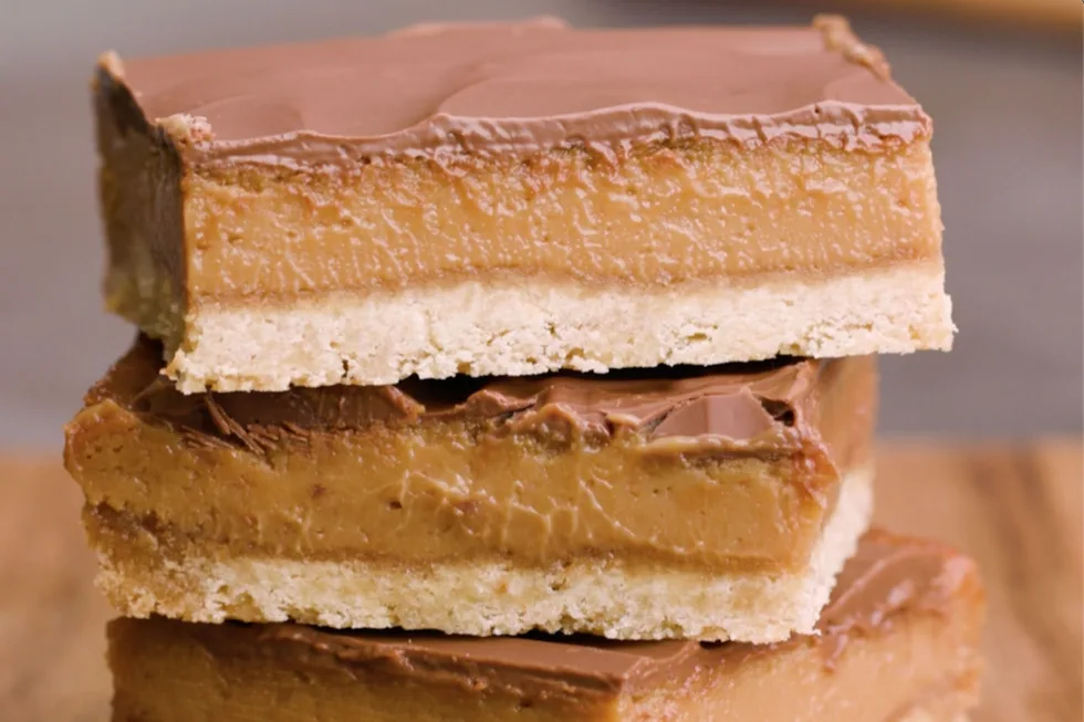 To make the caramel filling, heat butter, golden syrup and condensed milk over a low heat for 8 minutes. Stir with a spatula to combine. Pour caramel onto cooked biscuit base and use spatula to create an even layer.Â