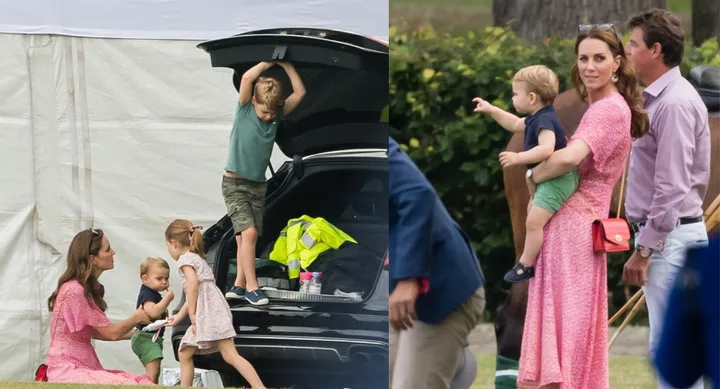 The Duchess of Cambridge took her three children, Prince George, Princess Charlotte and Prince Louis along to the polo today to support Prince William who was taking part in a charity match.