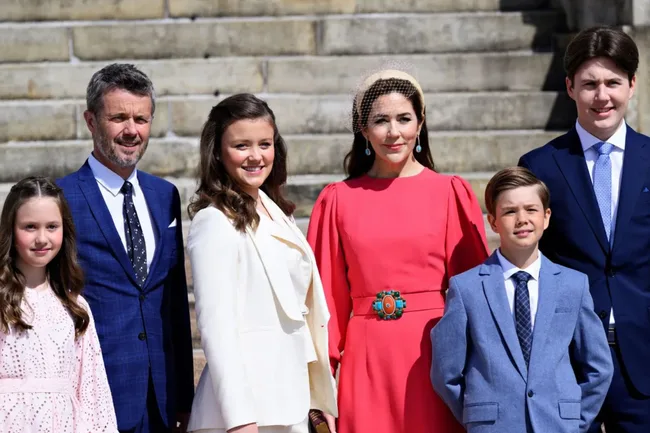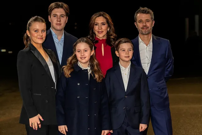 On Christmas Eve 2024, the Danish Royal Household shared this heartwarming photo of all four of the royal children with their proud parents King Frederik and Queen Mary, alongside their grandmother, Queen Margrethe.