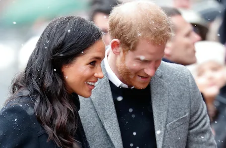 Meghan raised her eyebrows and started giggling, while a visibly shocked Harry took a step back.