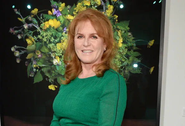 The Duchess of York looked glorious in green on Wednesday night for the opening of the T.M. Glass Solo Exhibition ‘The Audible Language Of Flowers’ at Onsite Gallery in Toronto.